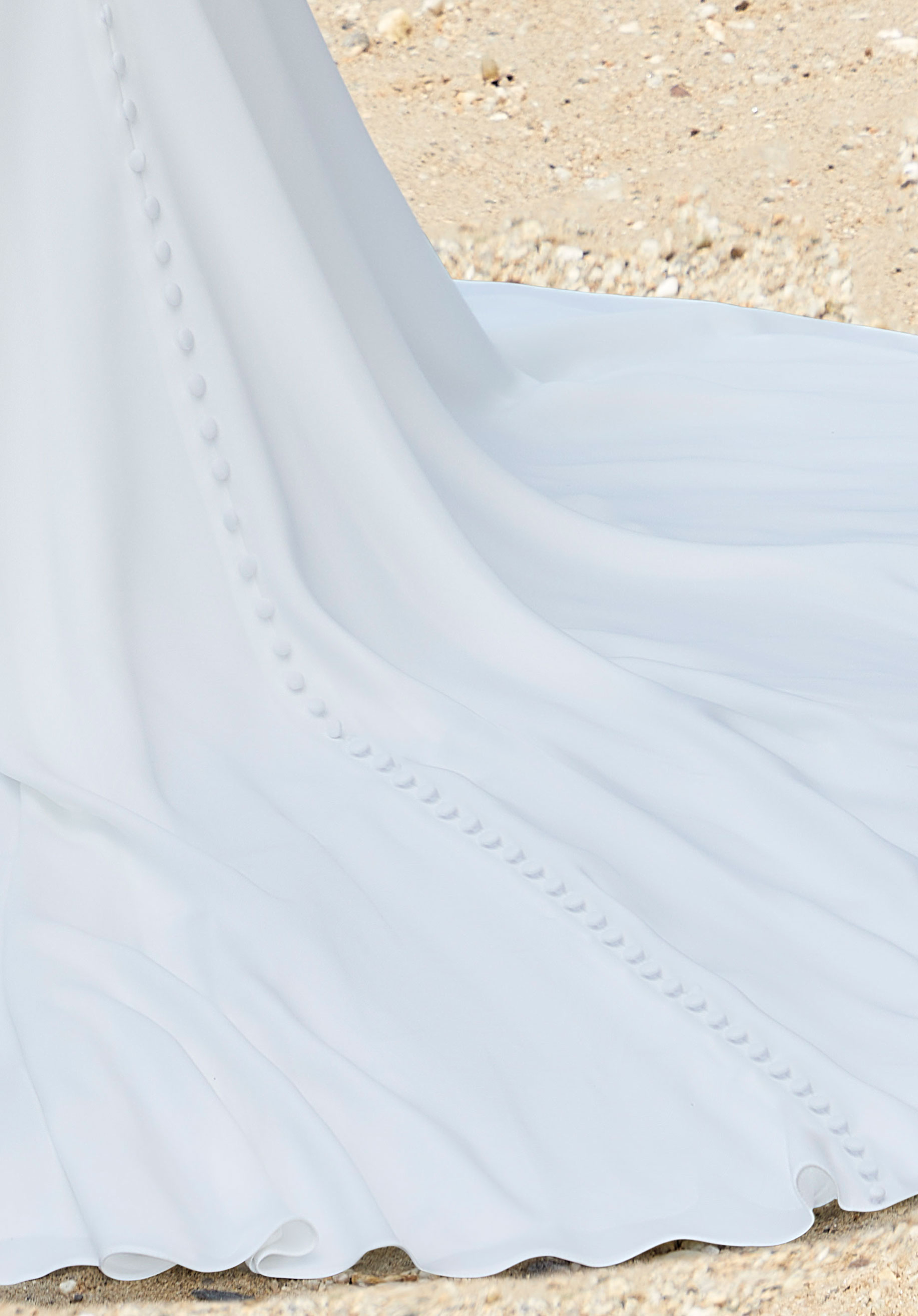 Illusion lace sides contour the body enhancing the fit and flare silhouette.
